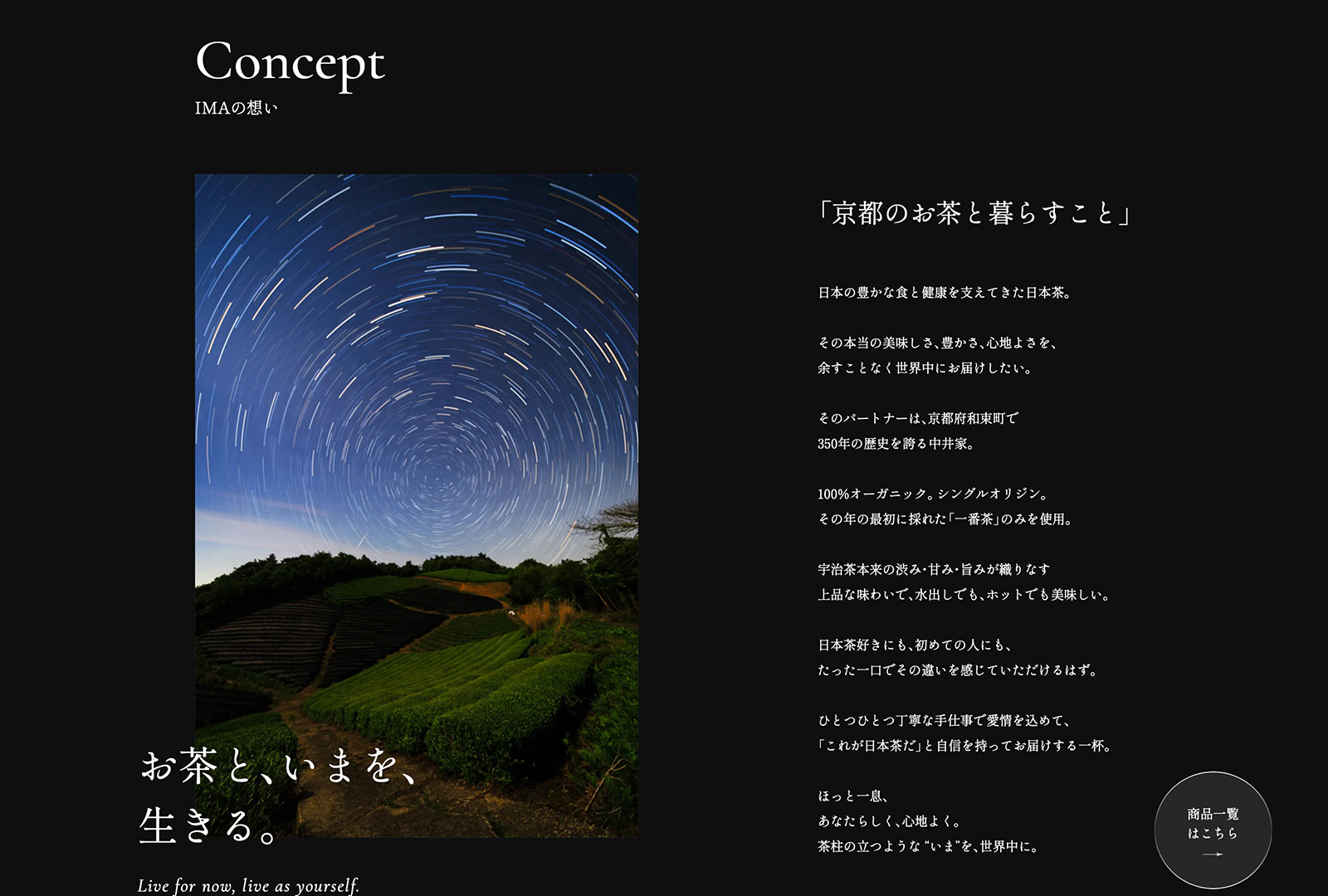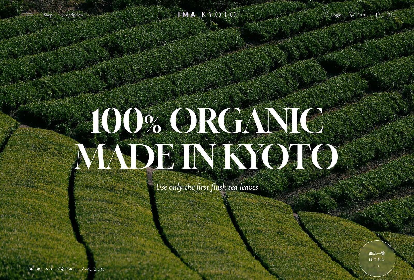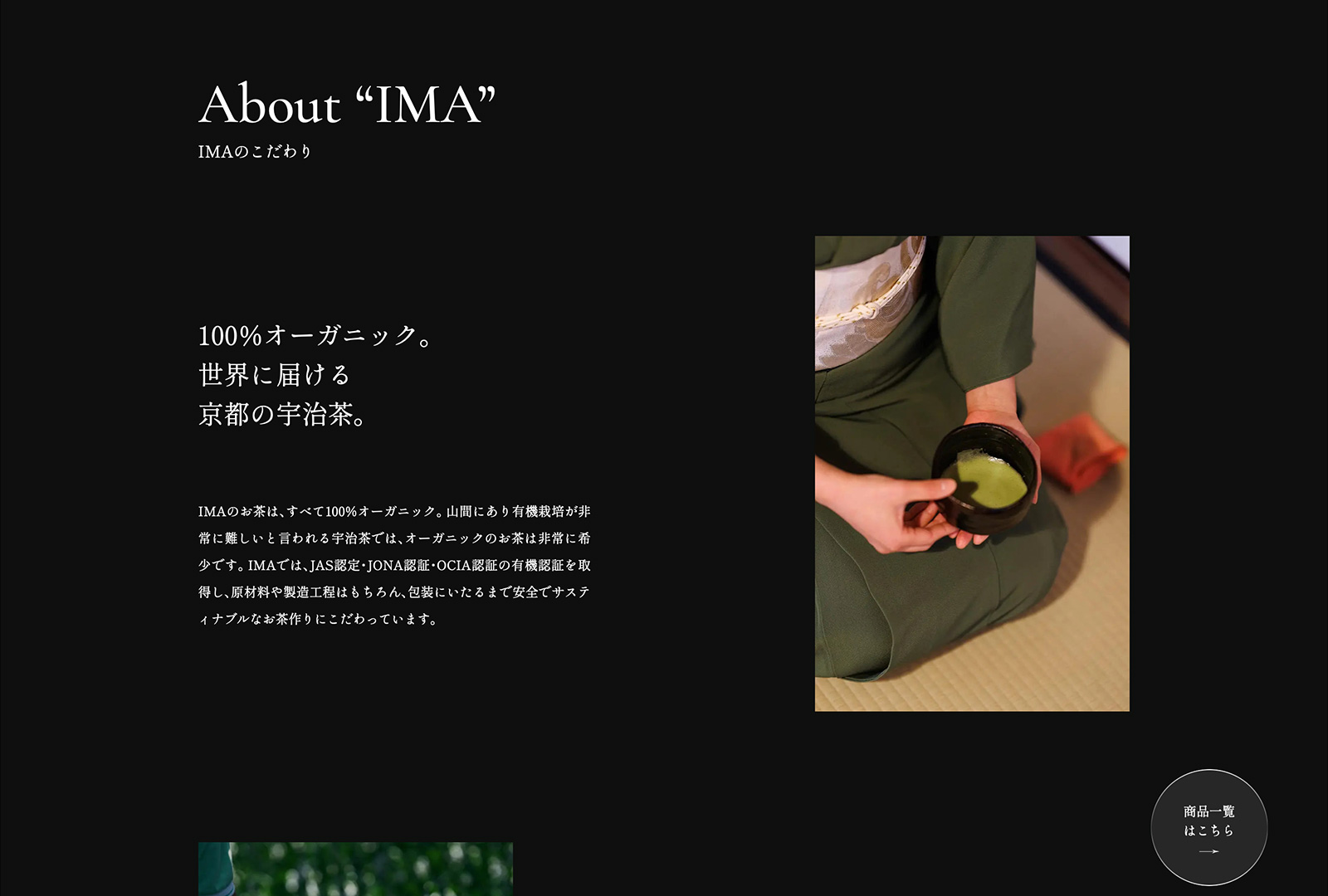 100%オーガニック、シングルオリジンの宇治茶「IMA KYOTO」のECサイト制作、撮影ディレクションを担当。